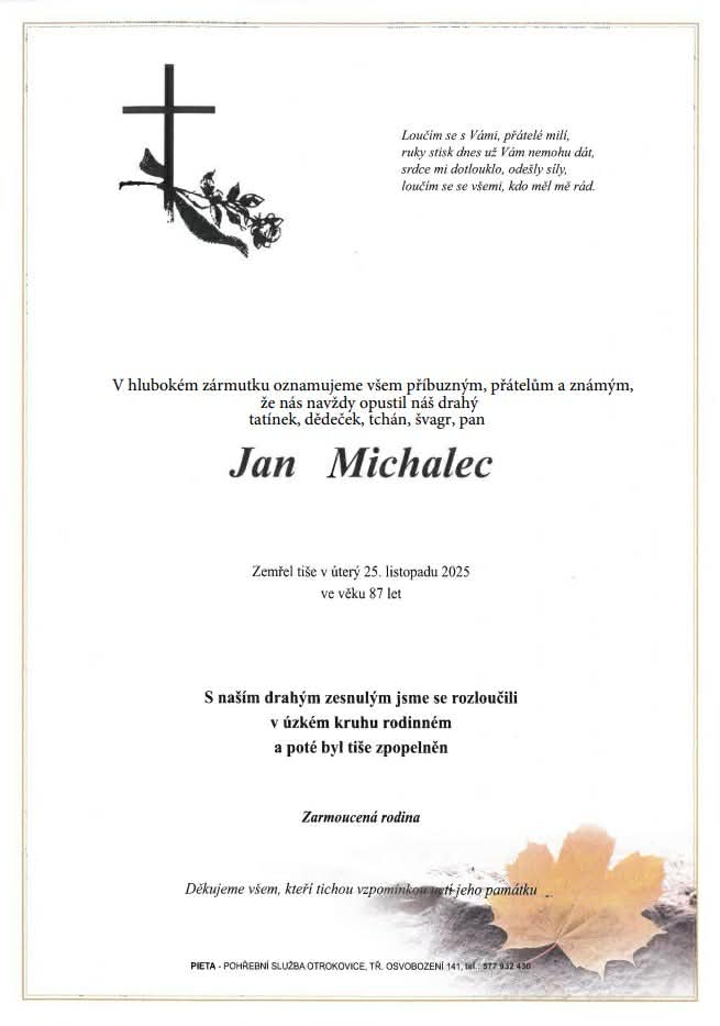 Smuteční oznámení - p. Ing. Jan Tejzr